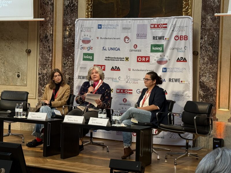 „Von Autokraten bedroht, von Konzernen gekauft“ – und wie kommt der Journalismus aus der Krise? Darum ging es beim diesjährigen, 27. JournalistinnenKongress am 5.11.2025 im Haus der Industrie. Wie überleben freie Medien in diesen turbulenten zeiten steigender politischer Einflussnahme und wirtschaftlicher Zwänge? Wie Moderatorin Alexandra Maritza Wachter betonte, sollte dieser Kongress für Inspriation sorgen und das Selbstbewusstsein von Journalistinnen stärken.